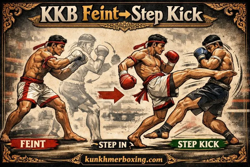 This is a feint-based step kick designed to create a reaction first, then attack the opening. In KKB, the goal is: