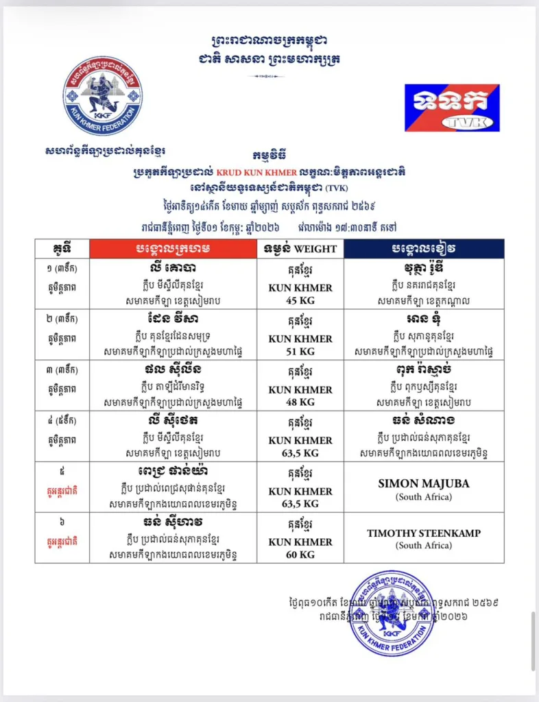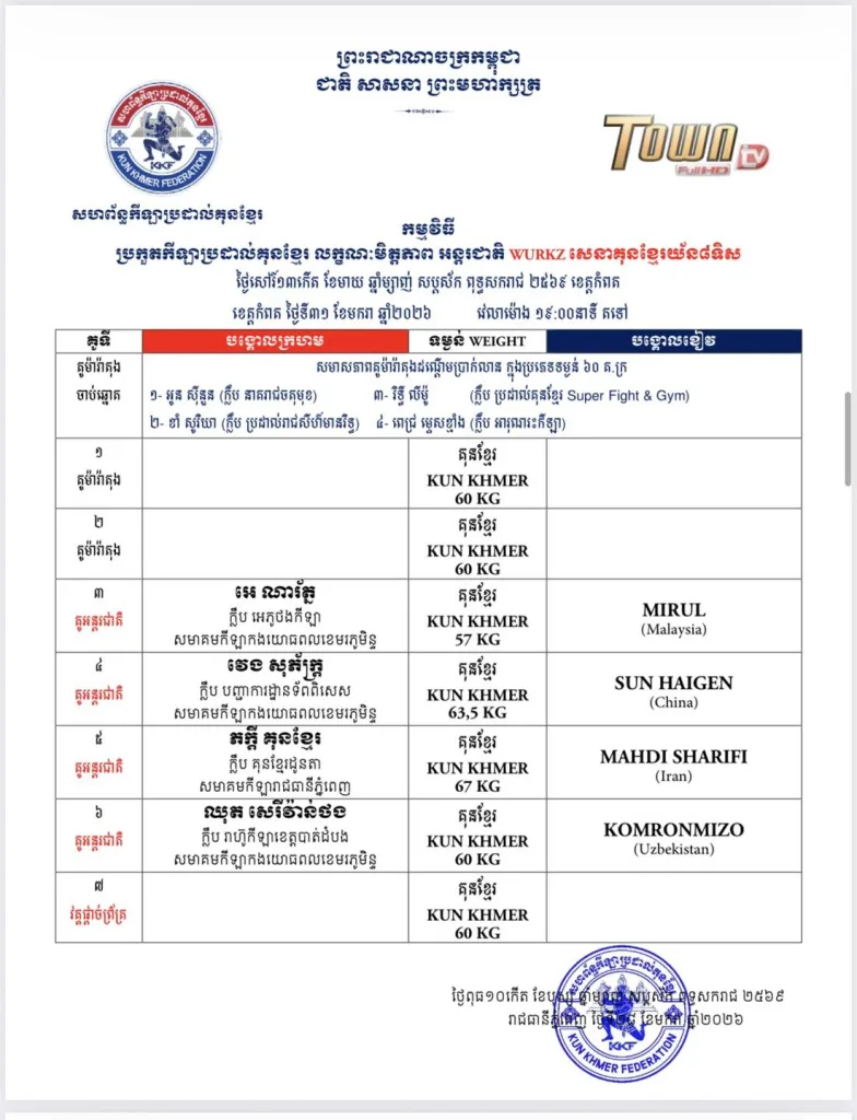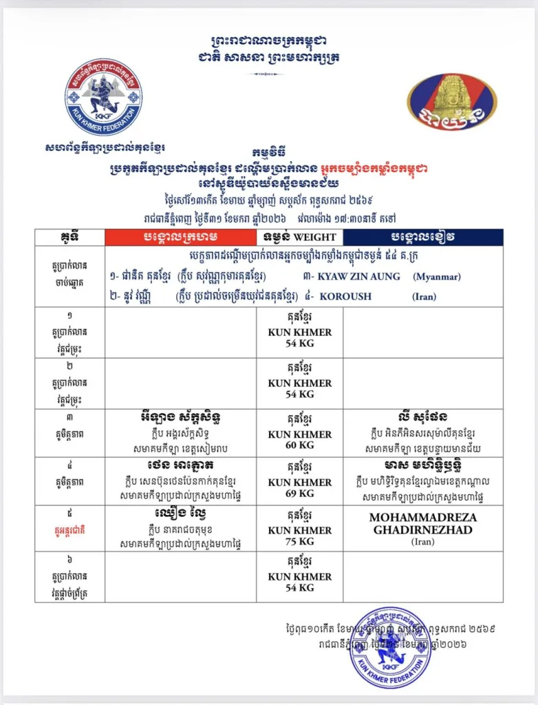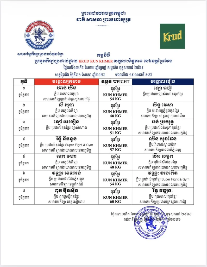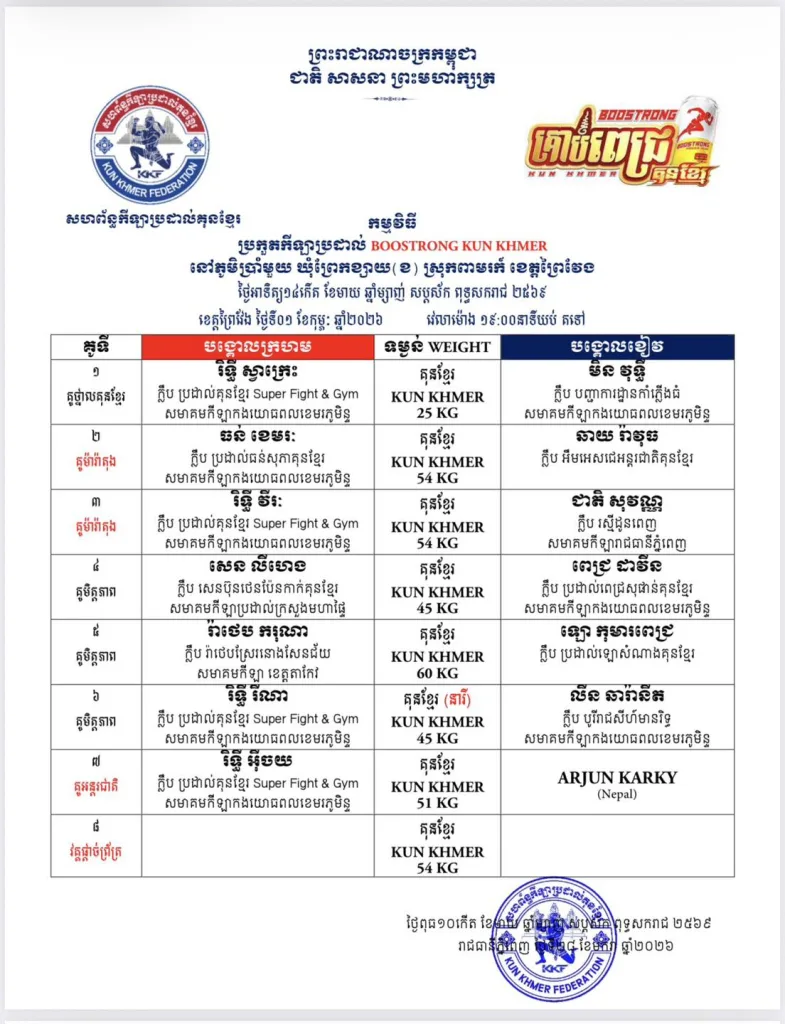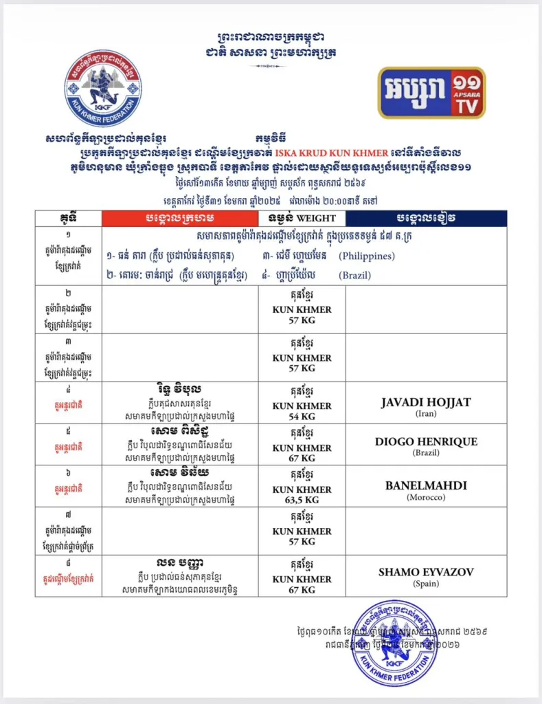 π Full updated schedules are available here: Kun Khmer Upcoming Fights