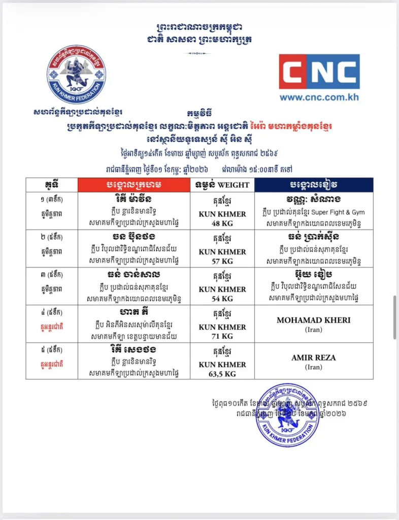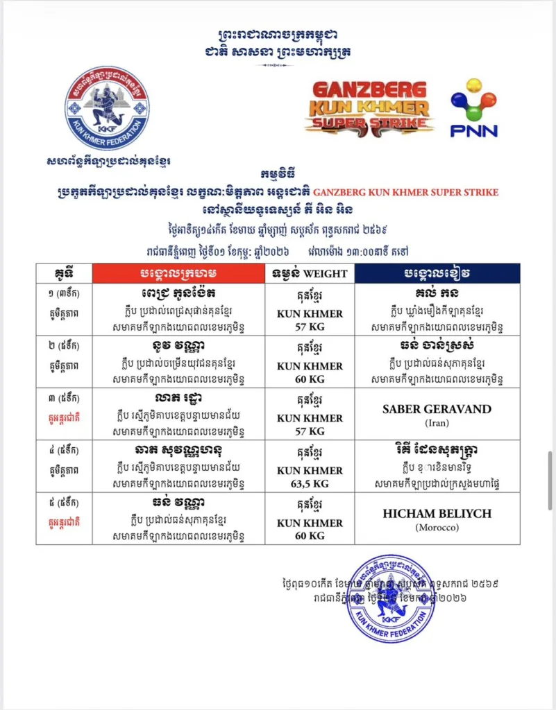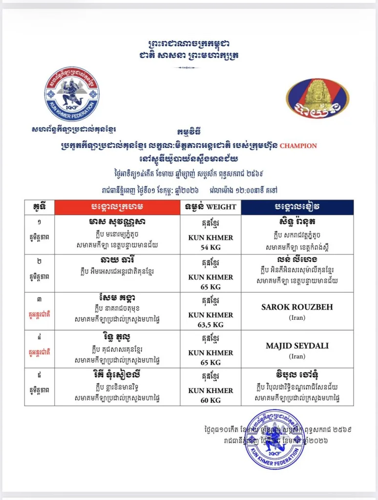 Yes. February 1, 2026 features official Kun Khmer championship belt matches π.